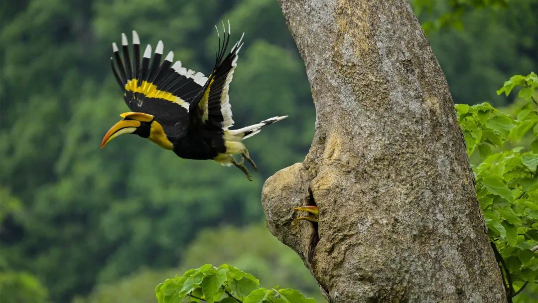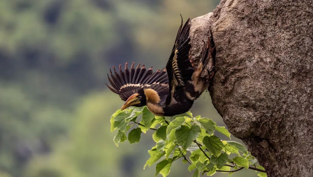 飞向雨林开启新生活的犀鸟宝宝。朱边勇 摄