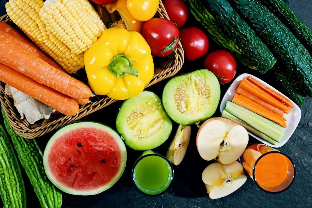 每天1斤新鲜蔬菜,深绿色蔬菜占一半以上,水果多样,每天200-350g,就可以满足。