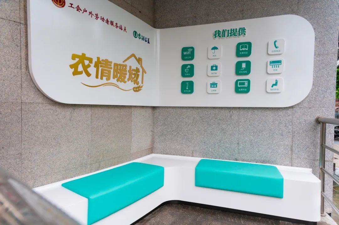 记者在二楼公益区域看到,整洁休闲的环境,适老化、智能化设施,为社区居民提供了良好的活动场所,而为方便老年人和残疾人士上下楼参与活动,社区银行还配置了爬楼机。网点门口休闲驿站配置了饮水机、微波炉、冰箱、桌椅等设施,为社区老人、环卫工人、外卖骑手、快递员提供临时休息场所。