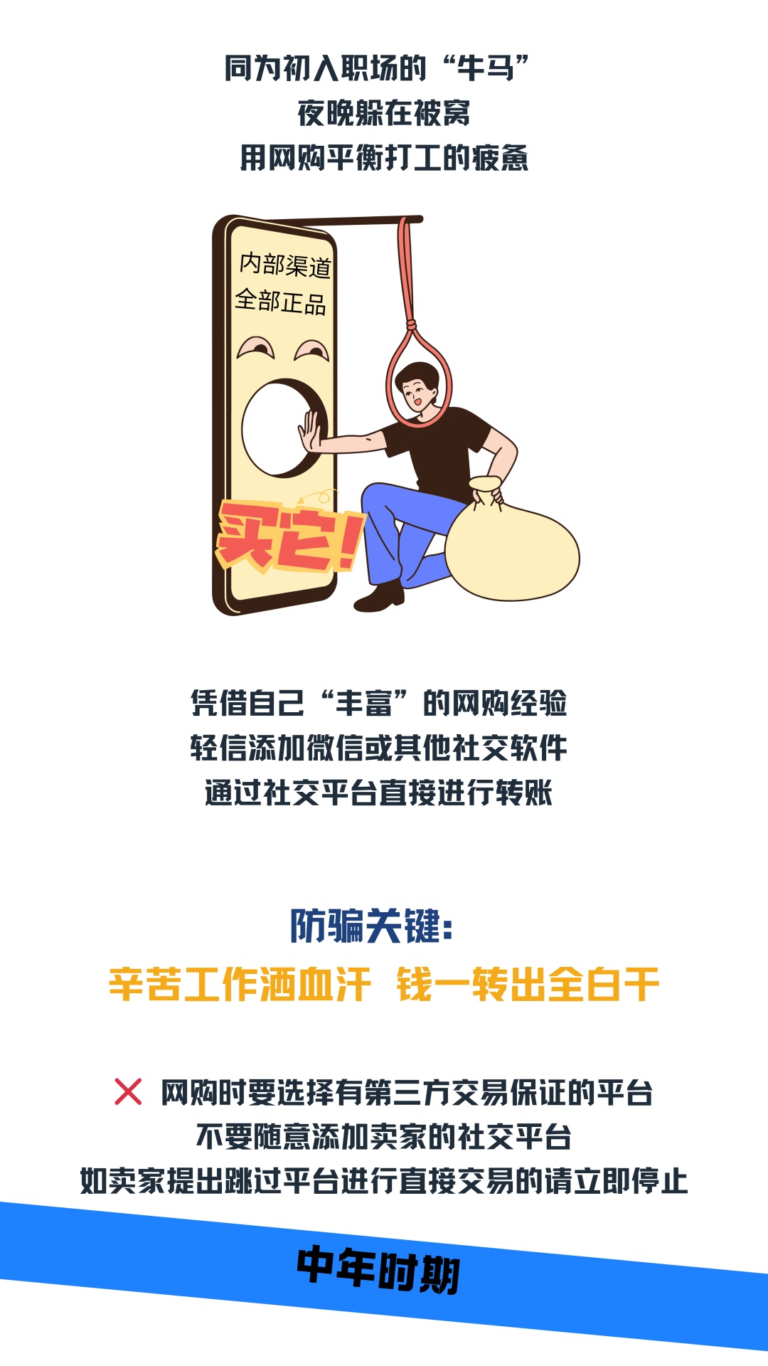 人生的每个阶段,我们都需要提高警惕,与或明或暗的诈骗博弈。从校园到职场,从青年到暮年,诈骗的 “剧本” 不断翻新,但人性的弱点却总被骗子精准拿捏——少年的好奇心、青年的压力与期待、中年的责任与焦虑、老年的孤独与不安,都可能成为骗局的 “突破口”。
