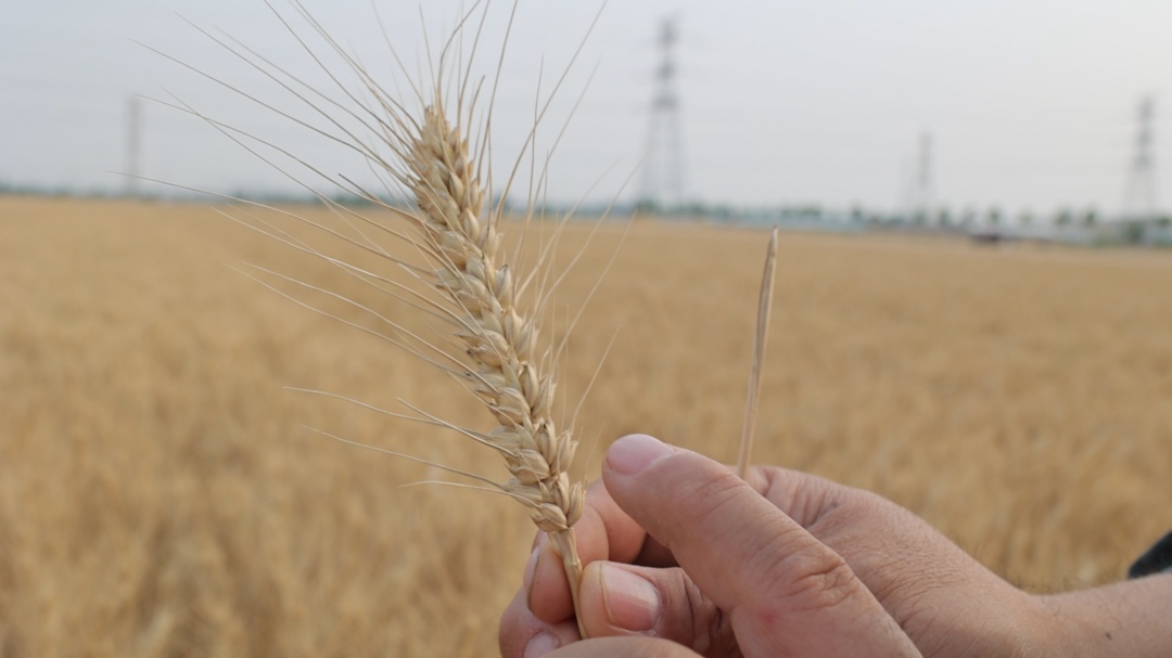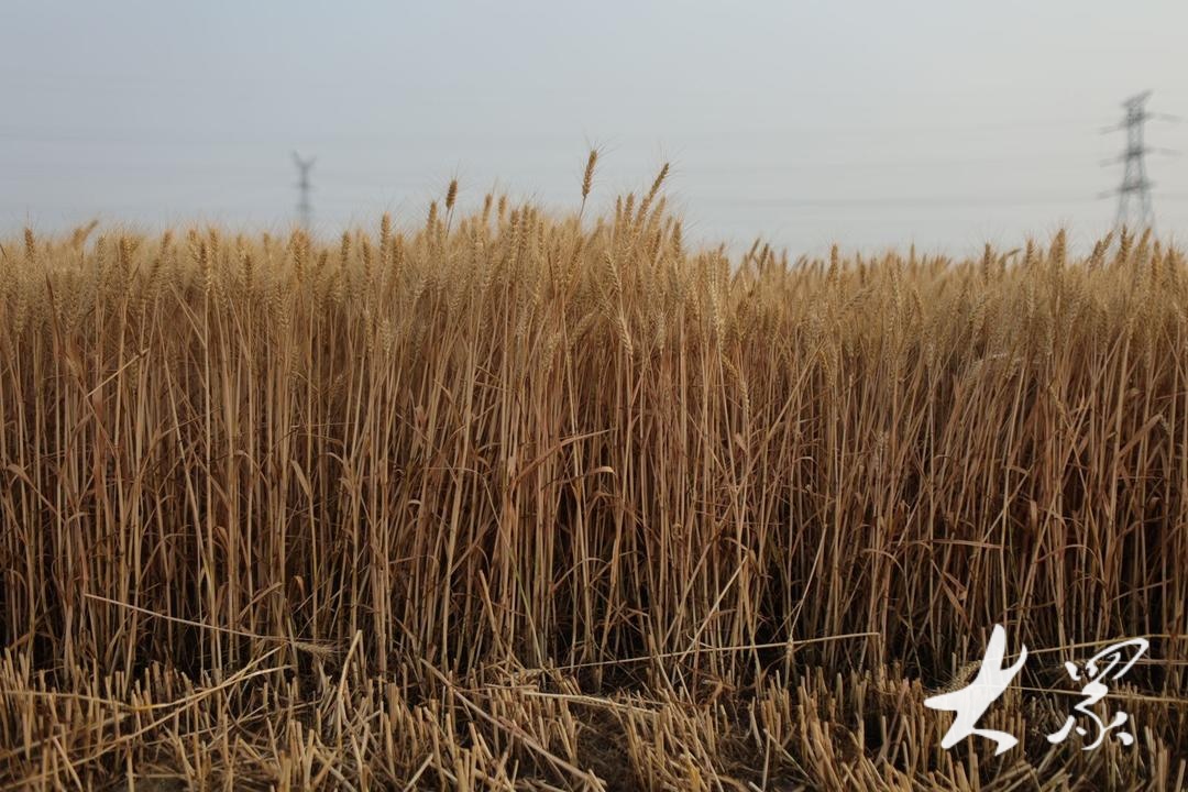6月11日,聊城市东昌府区闫寺街道辛王顺丰家庭农场,小麦收割已接近尾声,几辆秸秆打包机在田里把麦秆压实成方。但在路南的地块上,还有一片小麦的收割刚刚开始。若仔细观察,能发现麦穗里还隐约透着些青色。农场负责人王伟在一旁密切关注着收割机的路线。这是他给新品种“山农67”留的试验田,现在正是检验产量的时候。