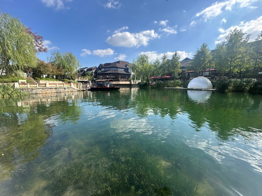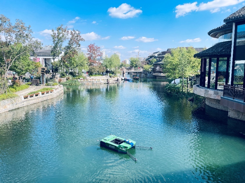 蟠龙市河水美社区融合了江南古镇、超大商业综合体、生态公园等区域特色,以人为本,以水为介,通过一系列行之有效的水生态环境提升措施,完成了水质优良、岸绿景美、人水和谐的建设目标,再现了水清岸绿的江南水韵和舒适悠闲的生机活力。