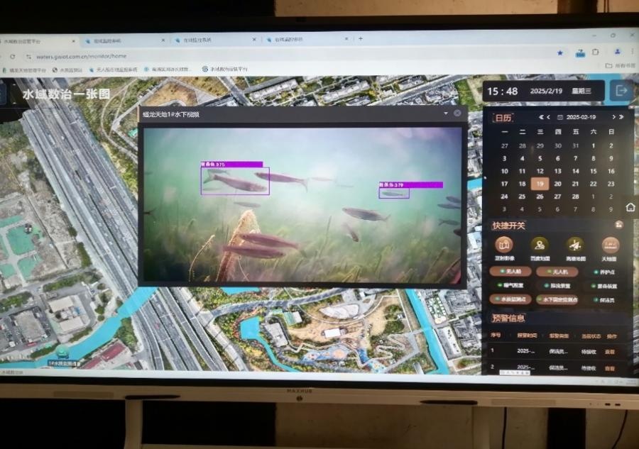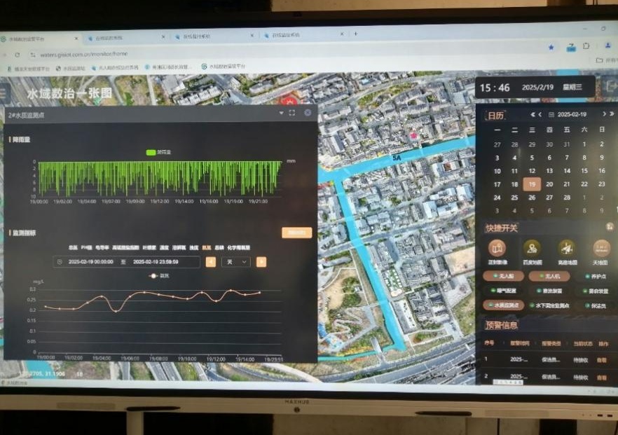 基于数治运管平台,整合多功能无人打捞船、多源光谱水质自动监测站、无人机、水下摄像机、微孔曝气、闸泵等智能设施设备的实时数据,通过远程多场景控制模式,实现水域无人打捞船全天候巡航保洁、水质在线实时监测预警和生物多样性实时监测分析,全面支持水生态修复保护与运维管理。
