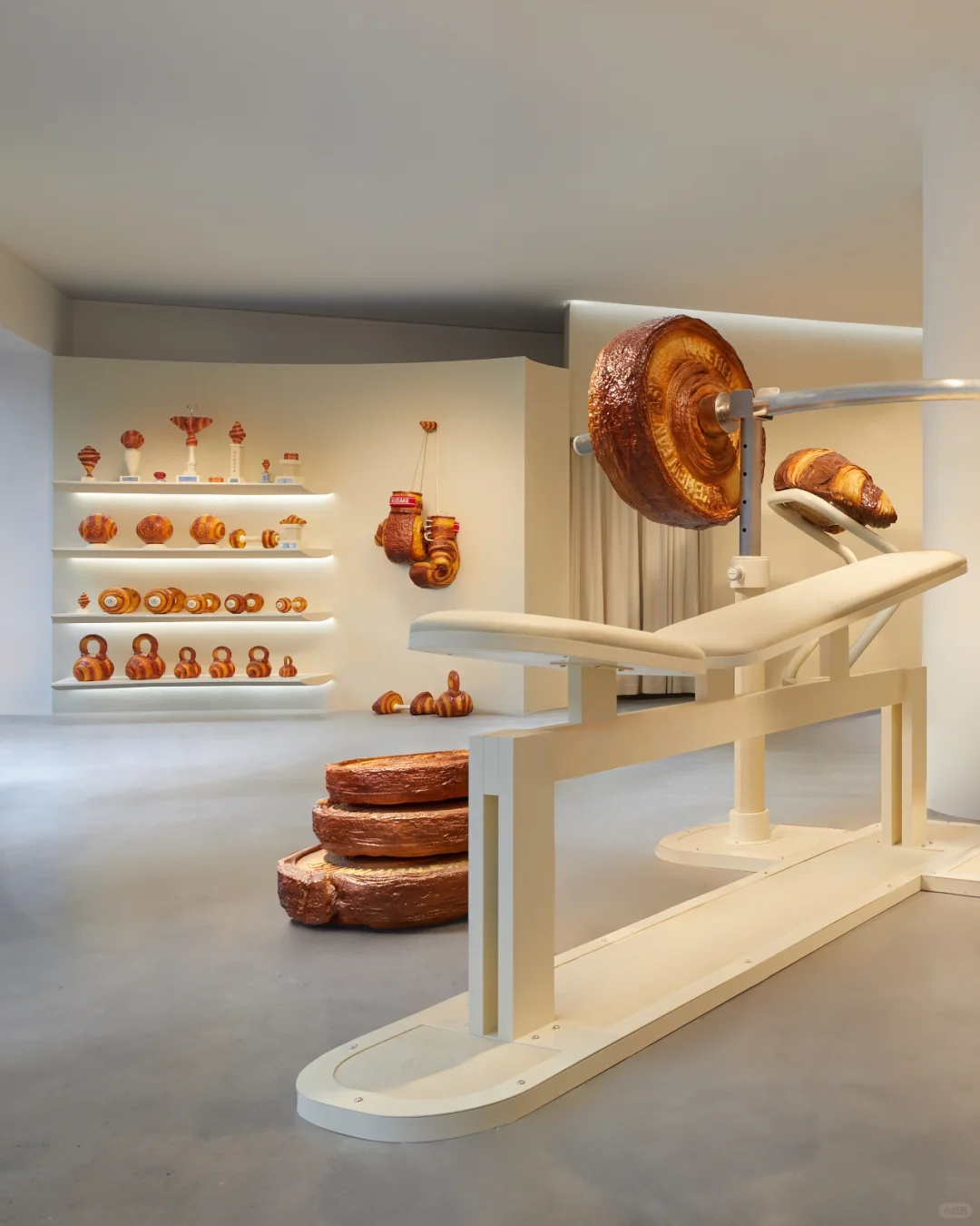 其中,NUDAKE打造了一个“可颂主题健身房”,造型可爱,惟妙惟肖;TAMBURINS包含身体护理、护手霜、香水等产品。