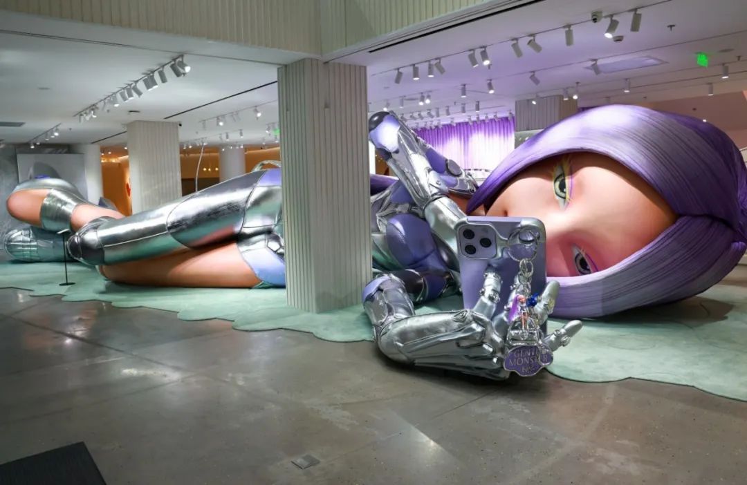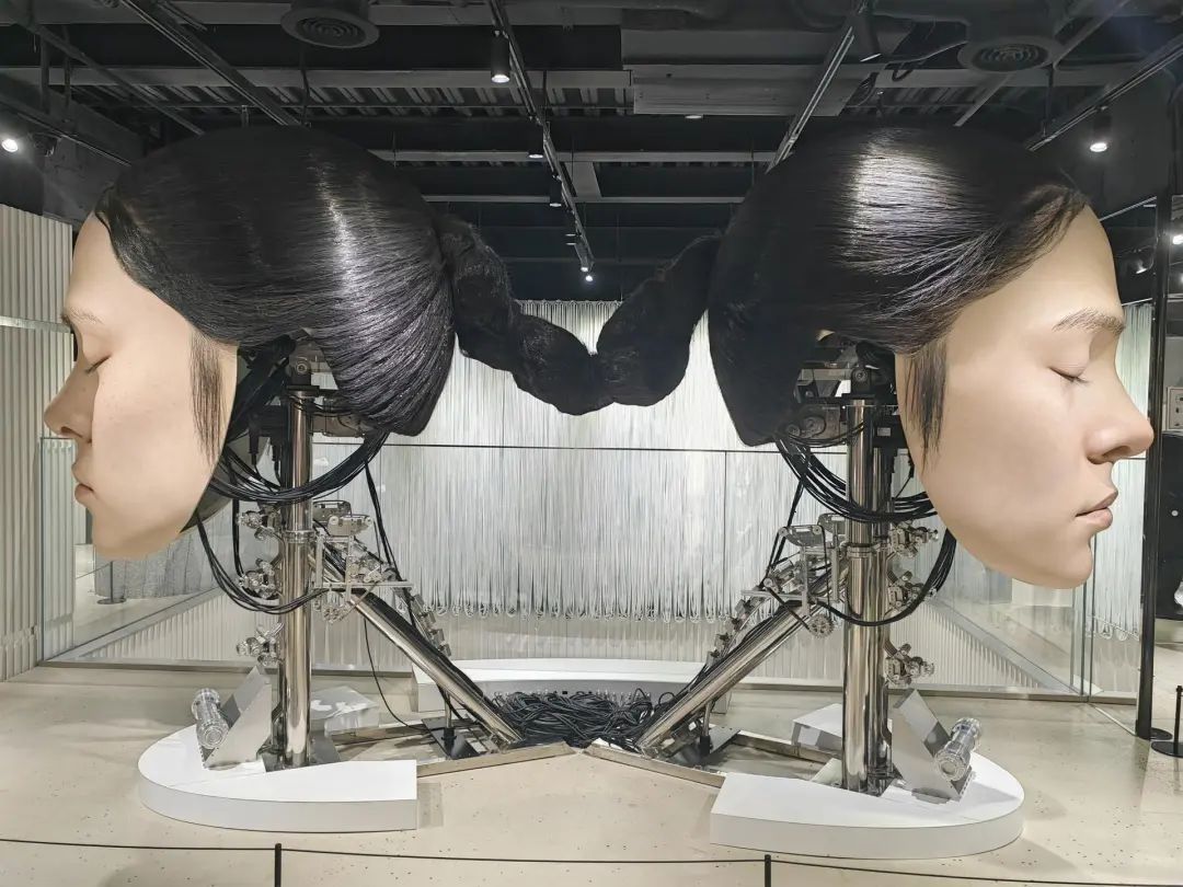 来到二层,逼真到毛孔清晰可见的巨型仿真机械人脸装置更是吸睛。