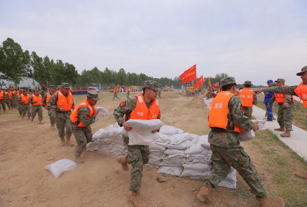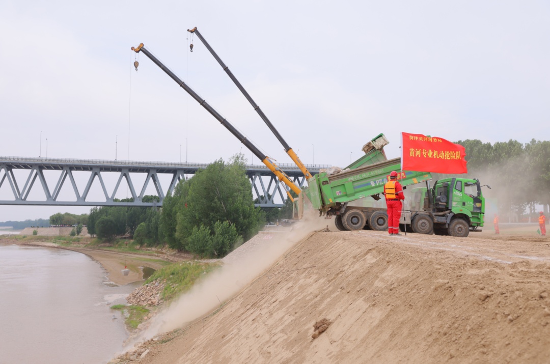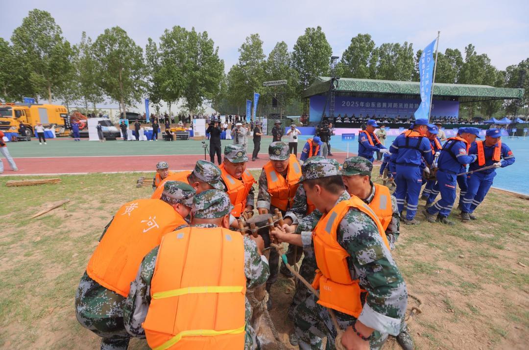 6月18日上午,2025年山东省黄河防汛抢险协同演习在聊城举行。