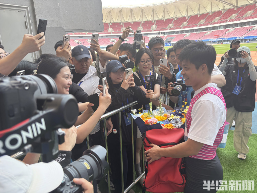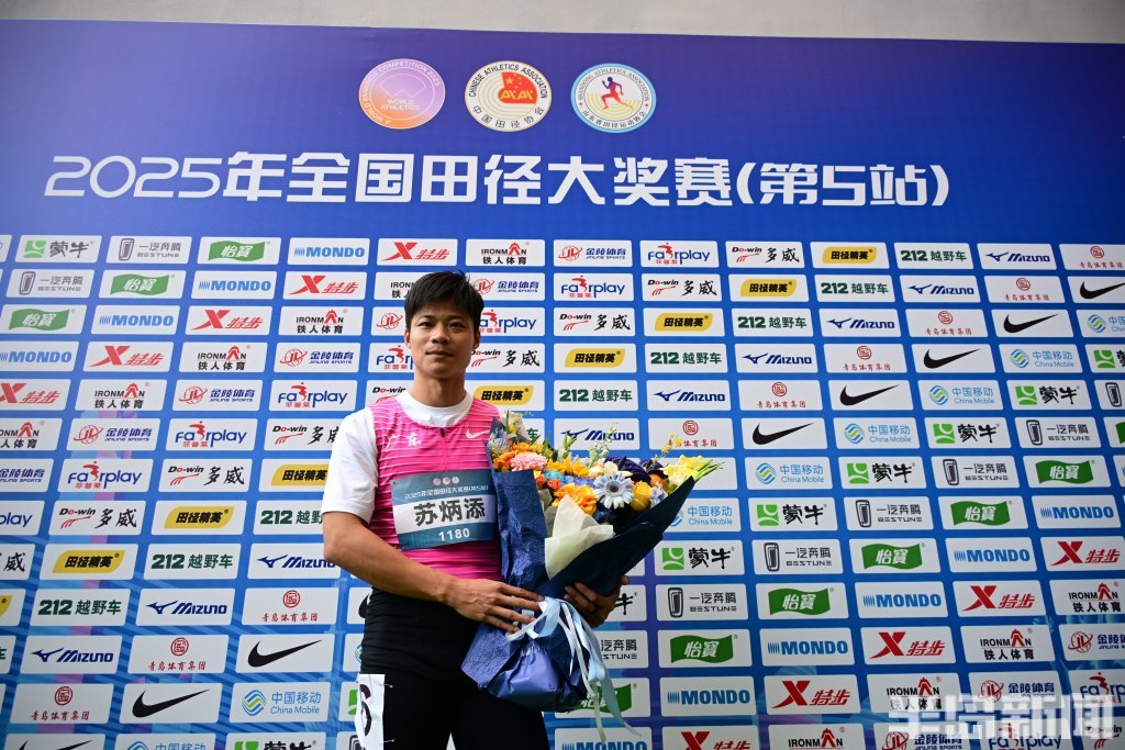 此次赛事落地青岛,是继2024年成功举办全国田径大奖赛(第4站)后,青岛再次凭借优越的办赛能力和浓厚的体育氛围,成为全国田径健儿的竞技舞台 。赛前,就有大量田径爱好者会聚国信体育中心守候苏炳添的到来,从赛前状态来看,苏炳添相当轻松,甚至都没有进行赛前踩场。接受采访时,他对自己的成绩比较满意:“我已经很尽力地跑了,大家可以看到,中国现在这个短跑平均水平提高很多,因为(自己)确实现在整个竞技状态、身体都不如之前了,也希望(离全运会)5个月时间自己能够慢慢地调整得更好,我争取上个替补。”苏炳添谈到,在全运会之后自己就会退役,不知道哪一场可能就是自己的最后一场个人项目比赛了。