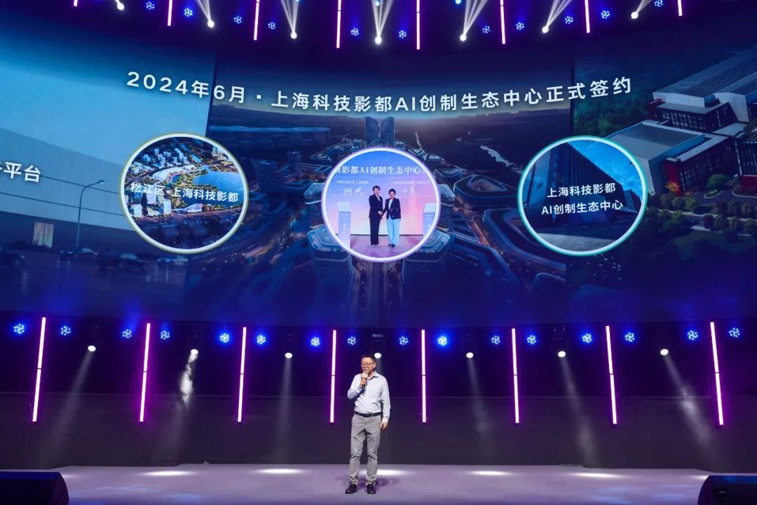 “上海科技影都AI创制生态中心”进行了相关项目发布。该中心由松江区与上影集团共同打造,是AIGC领域内的重要公共服务平台,在活动现场发布轻量化虚拟制作解决方案等创新成果。同时,上海电影技术厂联合多个合作方,完成AI赋能百部精品短剧计划、共建影视AI实验室、Omniverse数字资产平台等多个项目签约。