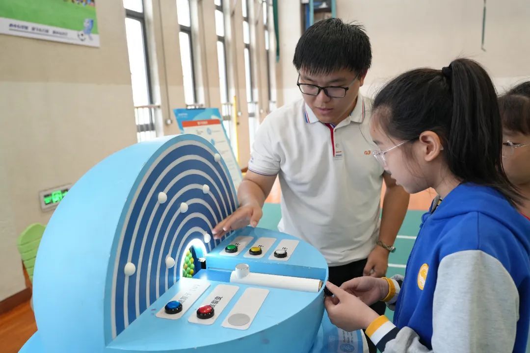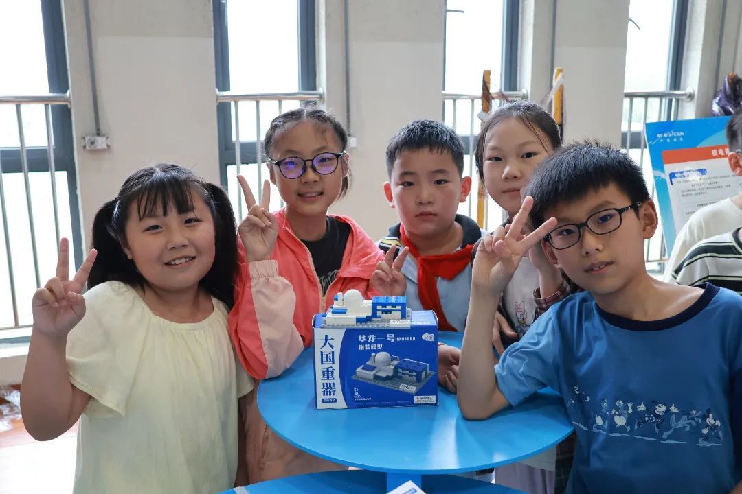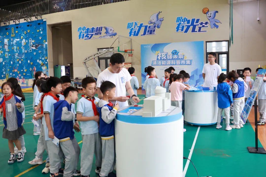 此外,现场十余个互动展项让学生们在游戏中解锁新知识:在“选址大闯关”了解核电站建设的条件;在“辐射大比拼”正确认识辐射;在“核电安全盾”巩固科普讲座学到的核电站的三道屏障和三个回路的知识;在“核电建造师”拼装“华龙一号”模型,领悟大国重器之精妙;在“光伏动力坊”“旋转发电站”协作搭建太阳能小车、迷你风机模型,实践清洁能源应用。