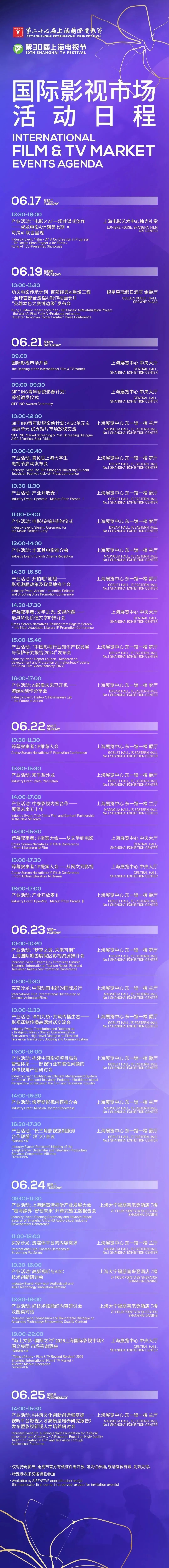 今年,国际影视市场旨在全面融合往届电视市场与电影市场优势,搭建为电影电视制作、发行、采购等环节的一站式资源整合平台。来宾可在市场期间参与丰富的产业活动,并通过自由洽谈与精准对接机制,深入拓展合作网络。