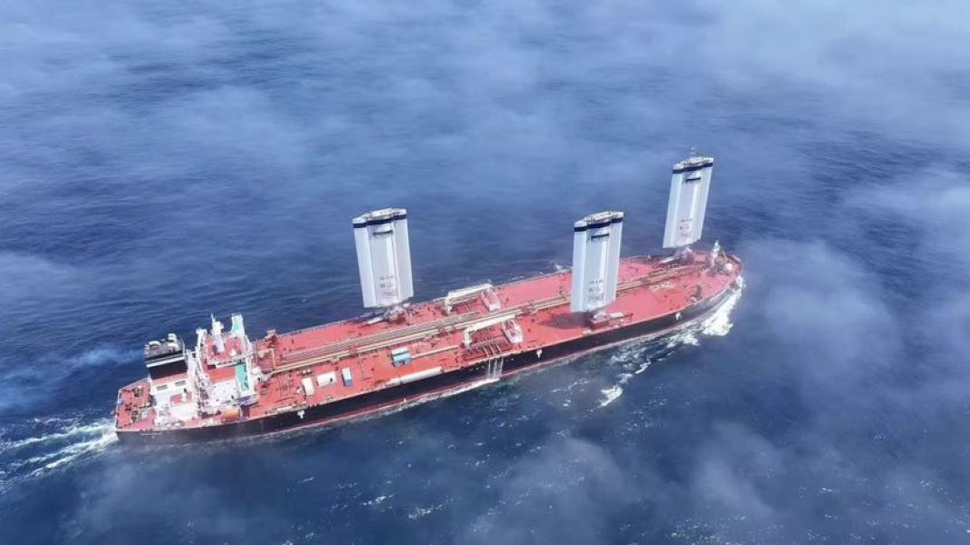 据悉,“布兰兹哈奇”轮总长近250米,宽44米,一次可以运输超过80万桶原油。该船最大的亮点,无疑是搭载在船体上的三个巨大银色长方体结构——风帆。这些风帆高达40米,由玻璃钢复合材料制成,当船在海面上行驶时,它们会垂直立在甲板上,为船提供传统能源驱动之外的“绿色动能”。