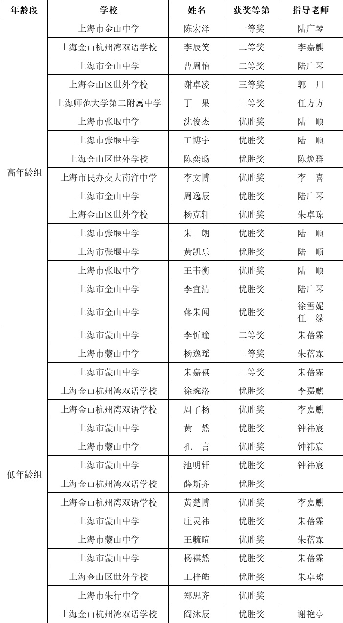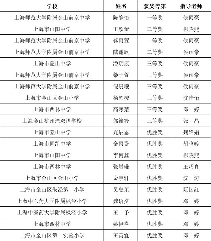 第40届上海市青少年科技创新大赛金山区获奖名单
