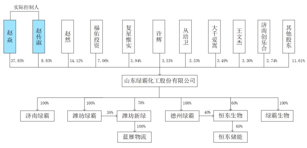 上述公开转让说明书(申报稿)显示,赵焱直接持有该公司37.85%的股份,为该公司控股股东;赵焱之女赵传淑直接持有该公司8.83%的股份。两人合计直接持有该公司46.68%的股份,为绿霸股份共同实际控制人。此外,根据赵焱、赵然、赵传淑签署的《一致行动人协议》,赵然为实际控制人赵焱、赵传淑的一致行动人。据悉,赵焱、赵然为兄弟关系。