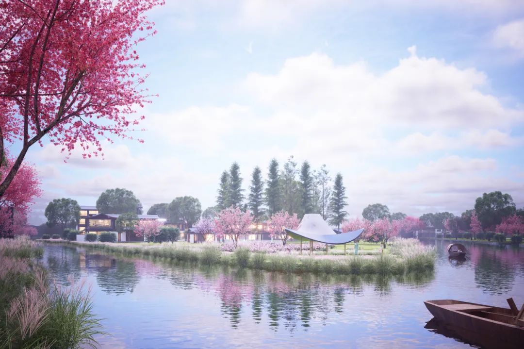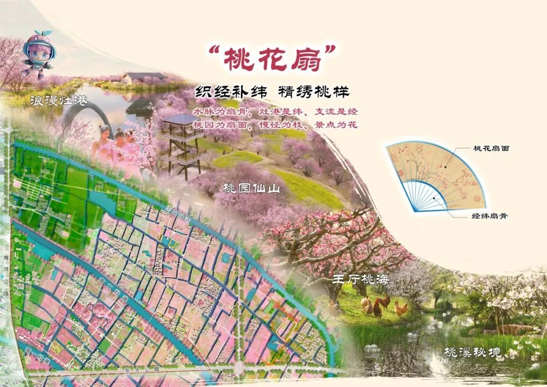为了让这片桃源更添魅力,近期将联通断头水浜、修复水岸生态、强化“羽扇经骨”;营造微坡曲水、延伸林间小径,打造“桃花扇面”;贯通比翼大道、提升村容村貌,描绘 “桃源乡居”,整体营造一幅“桃花扇”新画卷。未来,无论村民和游客都将能泛舟碧波,感受“舟行桃林影,人在画中游”的诗意。