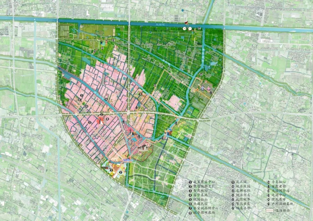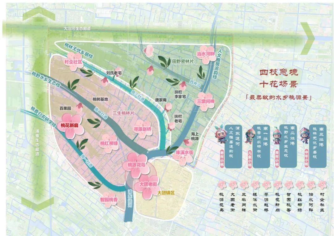通过传承桃耕文化、织补生态基底、提升风貌功能,营造桃源花岛、大团老街、三墩问禅、寻源赵桥、桃红柳绿、缘溪水街、智园桃香、桃花新扇、治水河畔、村企社区等多个场景,这里将不仅孕育出最好吃的桃子,更打造出产游复合的桃园和最舒适的沪派江南生活。