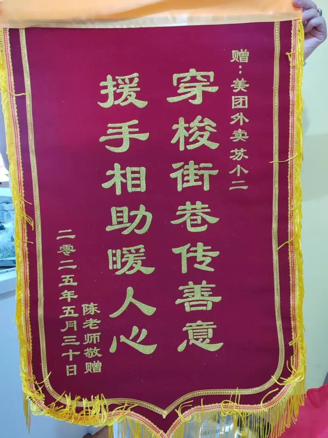 “感谢你们帮我找到这位好心的骑手!”近日,一面印有“雨中伸援手,暖心助路人”的鲜红锦旗,被郑重地送到临汾路街道的临汾职工驿站。送锦旗的居民满心感激,希望驿站能帮忙寻找那位在大雨中仗义相助的美团骑手苏小二,转达自己迟到却真挚的谢意。这面锦旗,牵出了一段温暖人心的故事,也展现了临汾职工驿站在凝聚社区力量中发挥的重要作用。