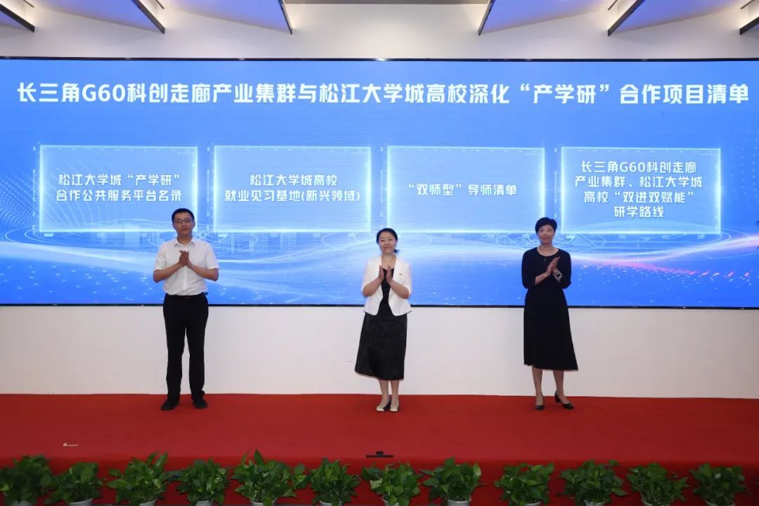 此次学习会是发挥产业集群党组织政治功能和组织功能,链接产业主体、整合优势资源,推动“党建强、发展强”的生动实践。活动上半场,来自经开区、正泰智慧能源、生物医药、集成电路产业集群及上海工程技术大学的党员代表首先呈现了《深化聚力发展先锋行动》微党课,展现了党组织和党员在推动高质量发展前沿的担当作为。随后,《2025年“党建‘链’接跨域资源——长三角G60科创走廊产业集群与松江大学城高校‘产学研’合作清单”》发布。据悉,该清单是松江区发挥党建“超级链接人”作用,依托大学城资源优势,推动产学研深度融合的最新成果。目前,松江区已推动建立松江大学城“产学研”合作公共服务平台23个,新兴领域就业见习基地58个,互聘“双师型”导师98人,开设产业集群、松江大学城高校“双进双赋能”研学路线29条。