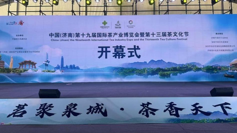 仪式上,与会嘉宾共同启动开幕式,随着“中国(济南)第十九届国际茶产业博览会暨第十三届茶文化节”字样跃出,标志着这场泉城茶事盛会拉开大幕。