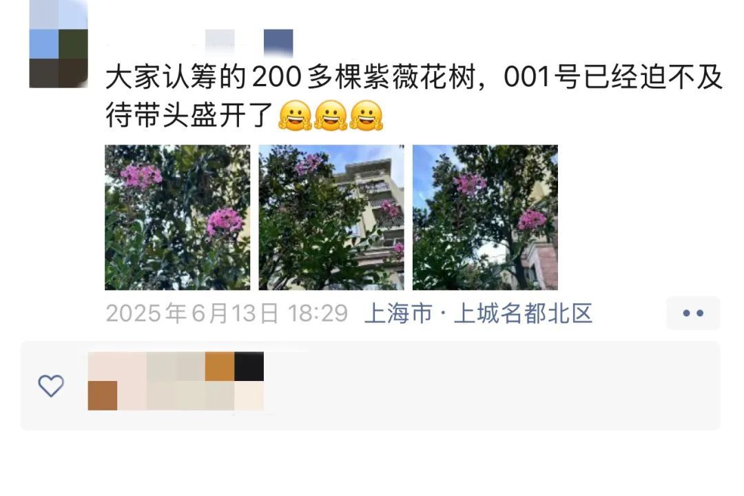 去年9月,台风“贝碧嘉”重创小区,20余棵广玉兰、桂花等树木倒伏损毁,草皮退化、黄土裸露的景象刺痛了居民的心。面对台风过后绿化修复重任,业委会迅速联合居委会、物业公司,并邀请党员代表、同济师生代表及商铺代表共商对策。经多方论证,最终选定寓意“富贵荣华”、抗风耐寒的紫薇花树作为家园焕新的主角。