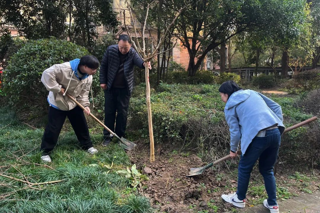 “自己的家园自己守护!”2024年冬,一场特殊的认筹行动在小区展开——业主自愿认领树木,自费认购树苗。短短两周内,200余棵紫薇树被认筹一空。居民们不仅获得镌刻姓名的专属树牌和认筹证书,更在凛冽寒风中亲手挥锹培土,将树苗栽种在规划的4条景观道上。社区党员组成护绿先锋队,同济学子提供植物养护技术支持,商铺赞助养护物资,一场全民共建的社区治理实践在此生动上演。