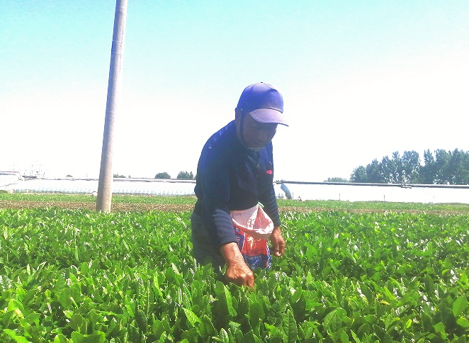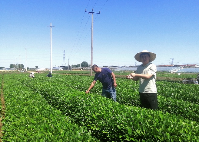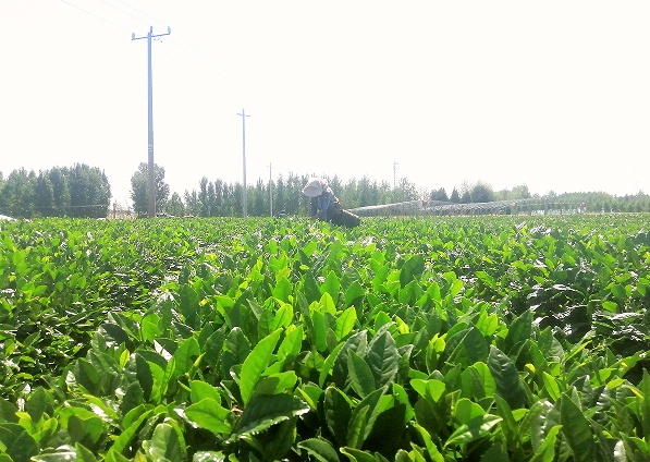 “三夏”时节,上午十一点,火辣辣的太阳已经爬上了头顶,在夏庄镇大窝疃村茶园里,采茶的村民们头戴着遮阳帽,包裹着头巾,陆续收工归来。