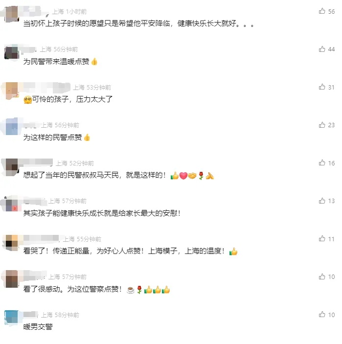 李警官介绍,前晚6点左右,自己在丽园路鲁班路路口执勤,男孩迎面走来,满脸的泪痕。正在处理交通违法的李佳梁随口问了一句,没想到男孩哭得更大声了。