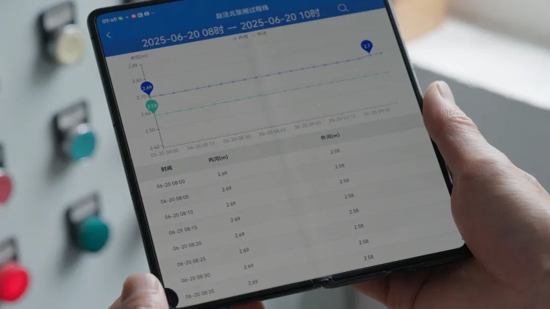 “我们实行24小时值班制度,上午下午各巡视一次。如果下雨,就会增加到每半小时一次。内河的常态水位需要控制在2.6米-2.8米,一旦水位超过2.8米就要上报。” 洪元介绍。