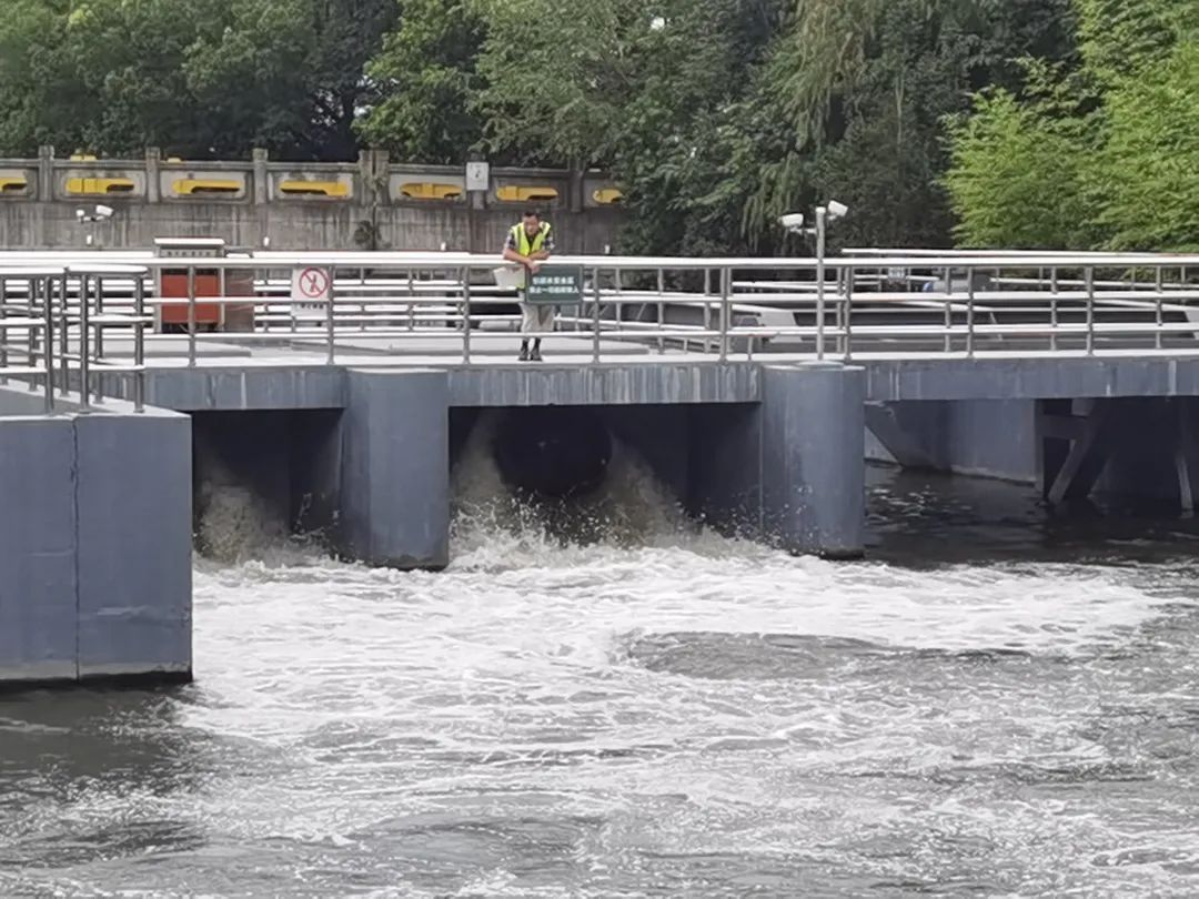 “正常情况下,我们通过闸门排水。一旦发现外河水位长时间居高不下,也会根据区防汛指挥部的指令,关闭闸门,开启泵排。在遇到极端天气,可能出现持续降水的情况下,也会依据指令开启预降水位,为内河腾出库容。”嘉定工业区城市建设管理事务中心工作人员蒋均卫介绍。