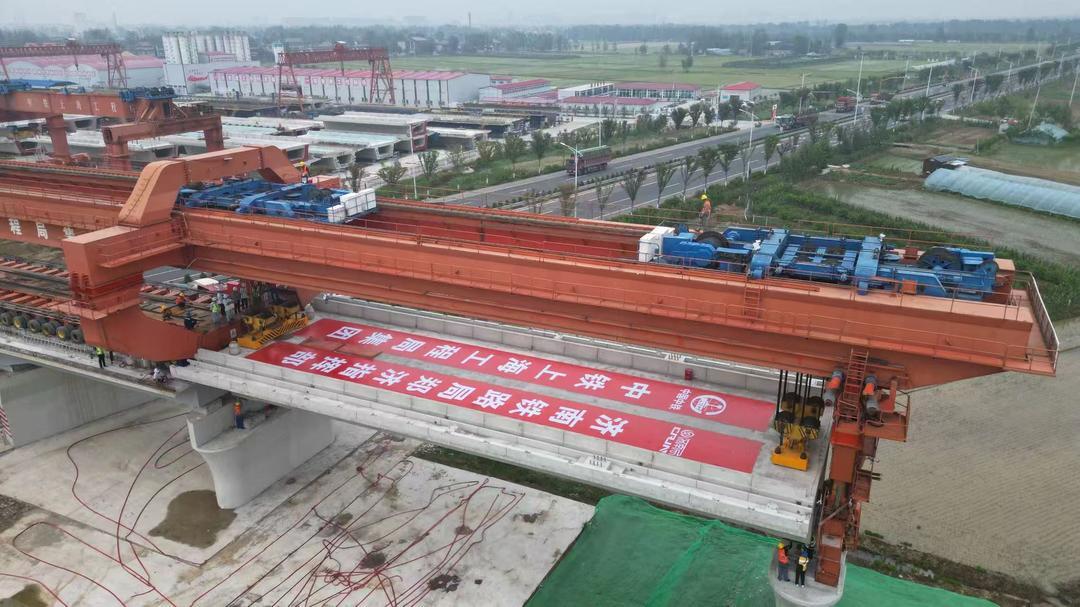 6月21日,中铁上海局潍宿高铁郯城沭河特大桥施工现场,箱梁平稳精准地落在桥墩上,标志着潍宿高铁临沂段正式进入线上架梁施工阶段,潍宿高铁全面提速。