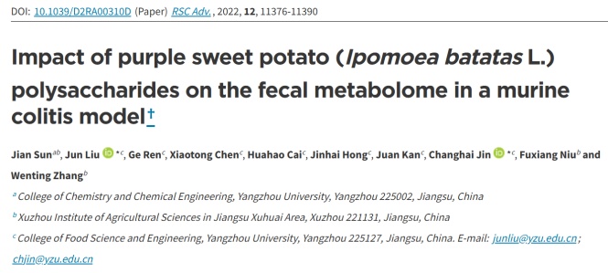 特别是一项发表在《RSC Advances》期刊上的研究——《Impact of purple sweet potato (Ipomoea batatas L.) polysaccharides on the fecal metabolome in a murine colitis manvuser2n8fl weakWords is-aimarked">s manvuser2n8fl weakWords is-aimarked">s manvuser2n8fl weakWords is-aimarked">s manvuser2n8fl weakWords is-aimarked">s manvuser2n8fl weakWords is-aimarked">s manvuser2n8fl weakWords is-aimarked">s manvuser2n8fl weakWords is-aimarked">s model》,为紫甘薯多糖对肠道健康的深层调控机制提供了新视角,令人耳目一新。
