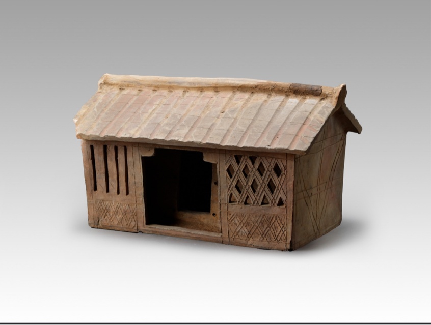 简介:汉代的陶屋的形制各有千秋,但都是模仿现实建筑的微缩陶制雕塑。这件陶屋刻画了古代房屋的结构,可以看到房顶、屋檐、门窗等细节,结构简洁却不失实用性,展现了汉代居民的居住方式。这件陶屋上花纹细腻,瓦片清晰可见,整体形制美观大气。