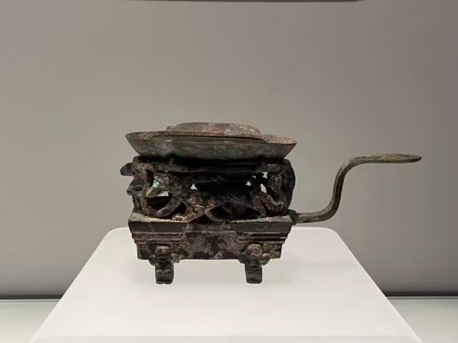 简介:这件染炉设计独特,表面装饰有四灵图案。染炉是食器,主要由耳杯、炉体组成。使用时,在炉内生火加热耳杯中的调料酱,将已经煮好的肉放在酱中濡染食用,这个过程被称为“染”,随吃随染,流行于汉代。