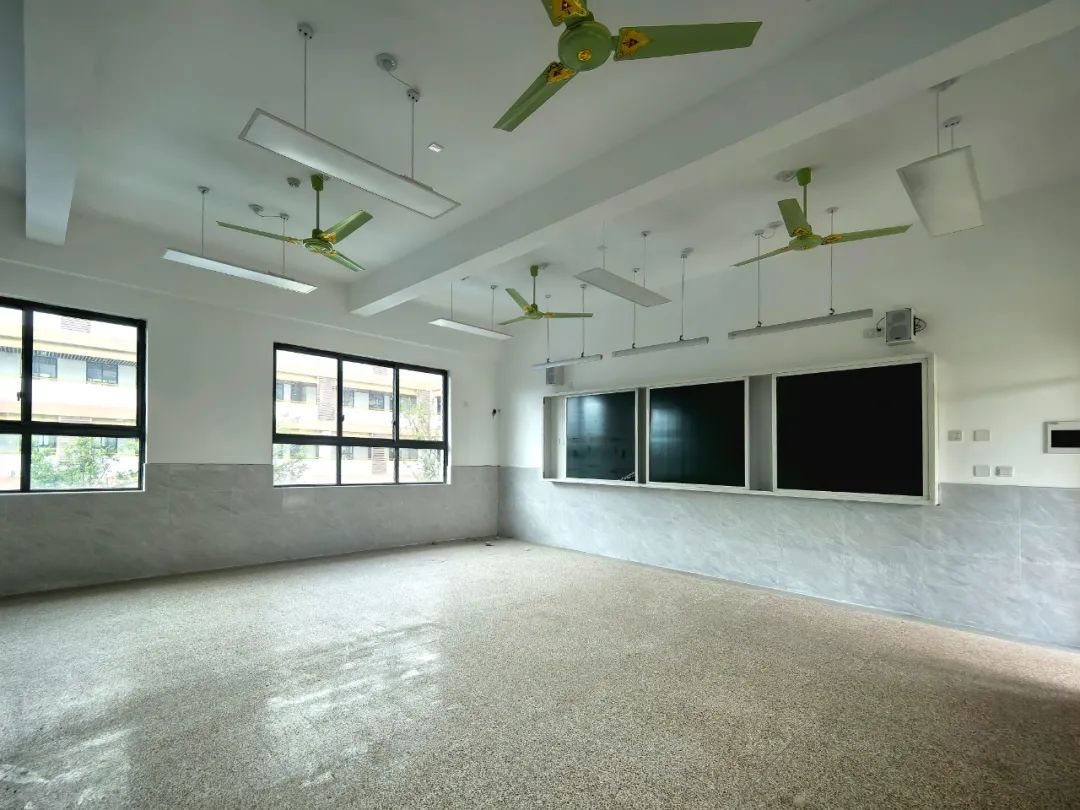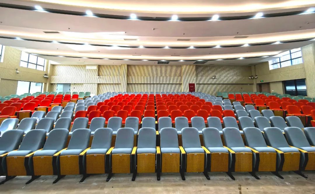 入校采访当天,记者看到,教学楼内,各教室书包柜已安装到位;剧场内,色彩绚丽的座椅也已进场;设计师正在球场进行测量工作,为安装篮球架等体育设施设备作准备;校园内的绿植郁郁葱葱,长势甚好。