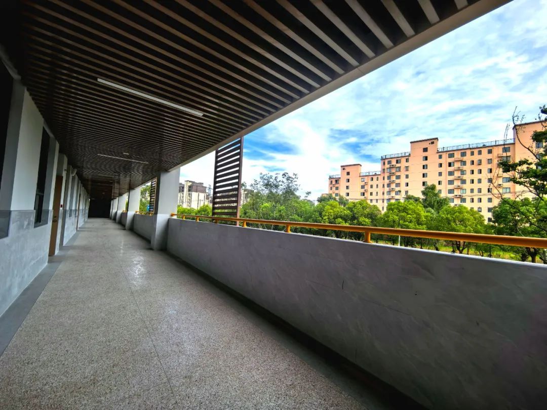 “学校里,一草一木都是巧思。”洞外实验党支部书记姚明恺介绍,学校共有九大花园,这些花园从地上到屋顶,将校园里的每一栋建筑串联。不同的花园造型不同、风格不同,功能也不同。如:位于综合楼楼顶的云憩花园呈狭长形,以栽种矮小植被为主,内设座椅,供师生课间休憩;连通教学楼与实验楼的光格花园绿植覆盖面积最大,是学生开展课外科学实践的绝佳场地,开辟了果蔬园地和花草种植园地;实验楼旁的流声花园,有小池水道贯穿其间。