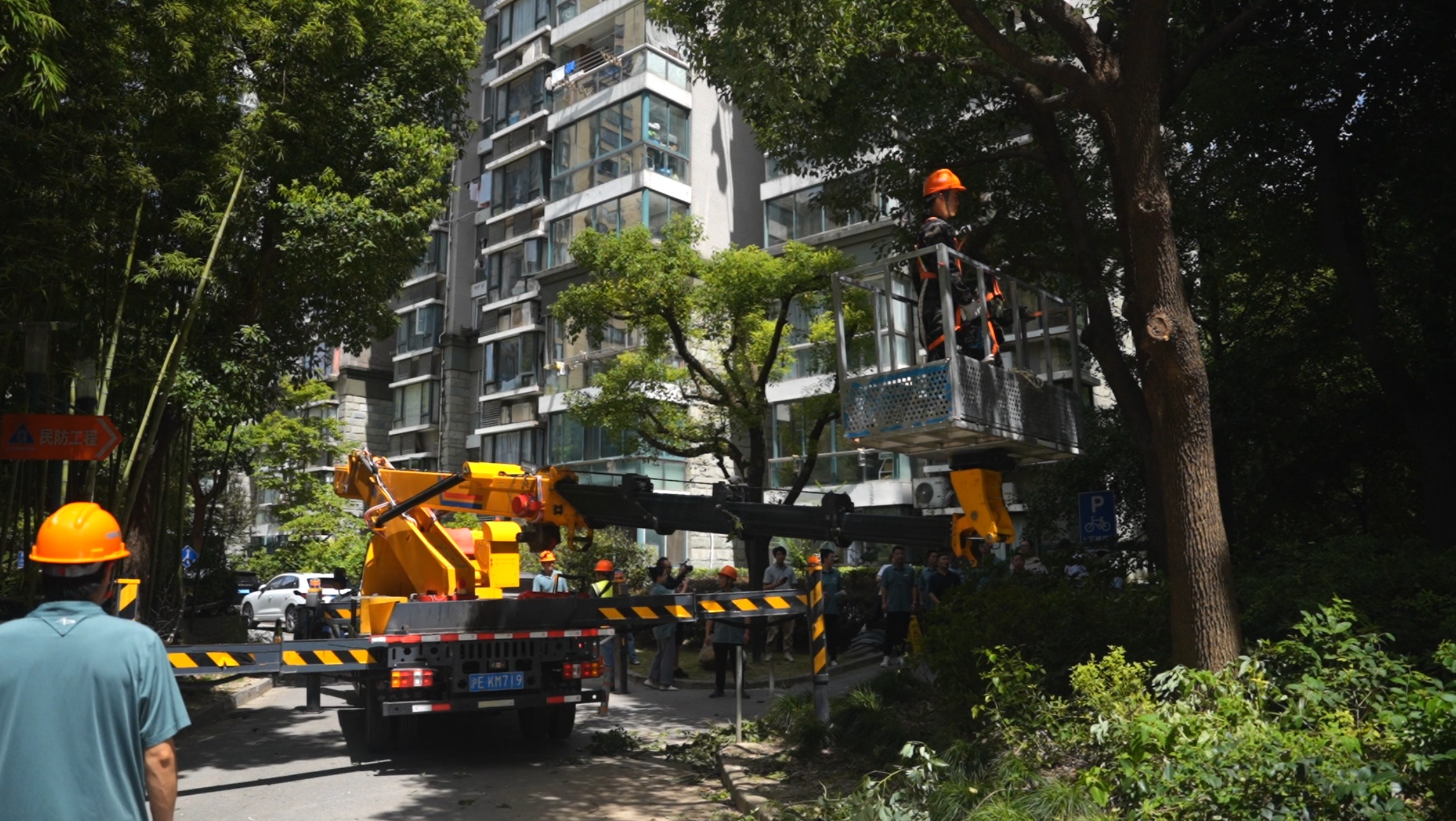 作为治理样板,曹家渡街道四和花园居民区相关负责人在现场介绍,通过前期“党员楼组长包干摸排-专业部门现场认定-网格党建联席会议平台协商共治”流程,仅用2天就完成28棵超高层树木的回缩修剪,并获得了居民的好评。