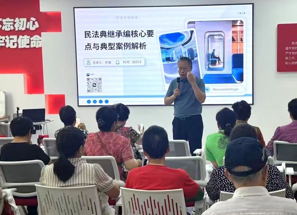 链接街道司法所资源,邀请上海创永律师事务所俞强律师讲授民法典继承编核心要点与经典案例解析,进一步增强市民的法律意识和维权能力,同时现场解答市民生活中遇到的问题。