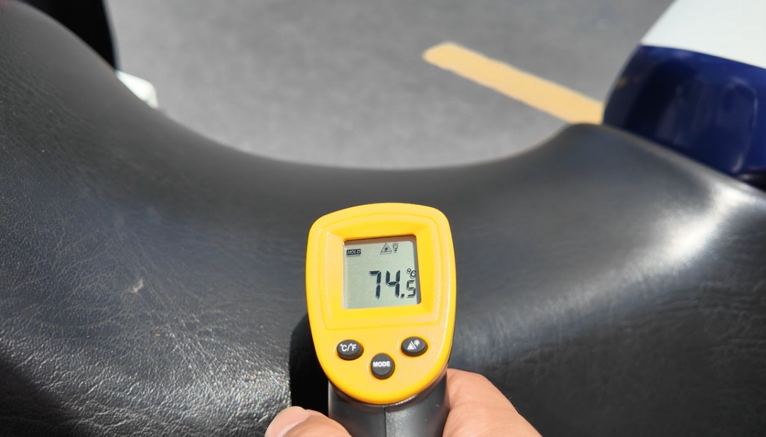 高温炙烤之下,安全这根弦不能就此“融化”……记者发现,太阳下警用摩托车的坐垫温度,已经高达74摄氏度。执勤交警对路口周边道路进行巡逻时,只要有事下车停留,再坐上去就是“烫”的程度。