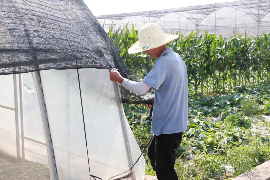 除喷淋系统外,大棚的遮阳网等设备也协同发挥作用,实现对棚内温度的精准调节。“面对连续高温天气,合作社还会在晚上及时灌溉补水,给蔬菜防暑降温。”刘志坚说。