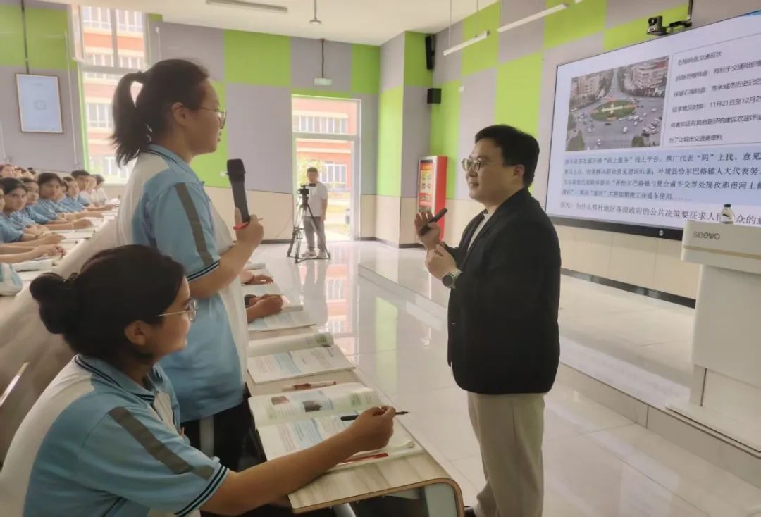 课堂创新接地气。董一飞老师以“社会历史的主体”为主题,以“上海叶城路”与喀什乡村变迁为切入点,由浅入深,将“人民群众是历史创造者”的抽象理论融入两地发展对比,设置多个辩证关系问题,引导学生用辩证思维和历史思维理解党与人民群众的关系。同时,巧妙运用模型分析和建构的方法,使学生在理论推理中深刻感受群众观点和群众路线的思想魅力和实践伟力,从而增强坚决拥护党的领导、尊重人民主体地位的政治认同,以及投身强国复兴伟业的责任担当。
