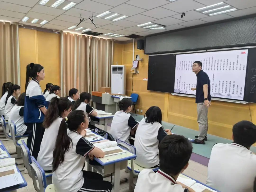 6月27日,全国青教赛一等奖获得者、复旦大学附属中学教师张慧腾老师在巴楚二中以《蜀道难》一课为例,讲授了一节内涵丰富的语文课。张老师从李白和西域的关系导入,激发了同学们的学习兴趣。课堂上围绕“李白为何创作《蜀道难》”,层层推进,让学生体会杂言古体诗参差错落之美,赏析诗中对“蜀道之难”的三次咏叹,结合“送别友人”的主旨整体把握诗歌意脉。继而以张文琮和杜甫的同题材诗作与李白《蜀道难》展开比较阅读,引导同学们深入感受李白的豪放诗风和纵横才情。最后引入欧阳修《庐山高赠同年刘中允归南康》一诗与李白《蜀道难》研读对照,使同学们在已有学习的基础上更进一步,站在古代诗歌发展史的角度理解作品在时代中的独特价值,深刻领悟《蜀道难》所蕴含的昂扬生命与盛唐精神。