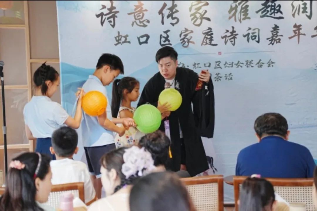 日前,由区妇联主办的“诗意传家、雅趣润心”家庭诗词嘉年华诵读专场活动在人间茶话(滨江店)举行。活动吸引24组家庭参与,通过诗词诵读、文化体验、专家点评等形式,让传统文化浸润家庭,为家庭文化建设注入新活力。