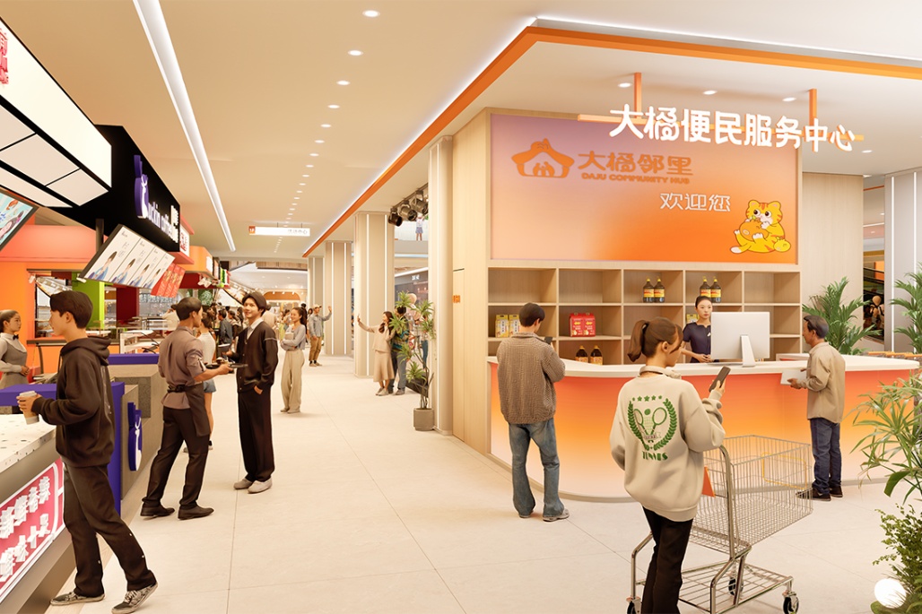浦锦大橘邻里作为“大橘邻里社区商业中心”品牌的闵行区首店,在延续大橘邻里的设计风格基础上进行品牌提升与服务优化,为大浦江地区居民提供美好生活场景。将在引入丰富的商业业态,便民亲民的高质价比品牌基础上,通过自营、联营的方式打造大橘便民服务驿站、大橘书屋、大橘艺术团、社区会客厅等的社区服务空间,丰富社区居民的物质与精神文化生活。