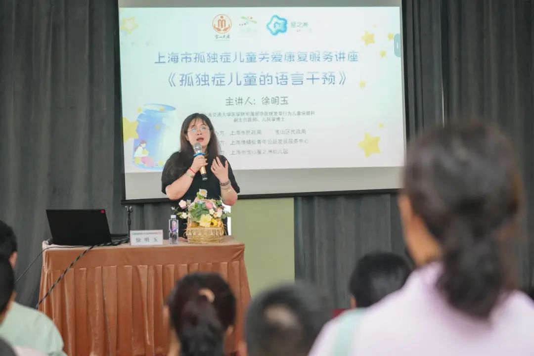 近日,首场面向宝山区的“孤独症儿童的语言干预”讲座举办。讲座由上海交通大学医学院附属新华医院发育行为儿童保健科副主任医师、儿科学博士徐明玉主任主讲。活动吸引了宝山区60余名孤独症儿童家长及孤独症儿童康复服务从业人员,部分外区孤独症儿童家长也慕名而来。徐明玉主任立足医学前沿,系统阐释了孤独症儿童语言发展的科学规律,并结合丰富的临床实践案例,提供了科学化、专业化的干预指导模式,为促进孤独症儿童构建有效沟通桥梁提供了有力支持。在互动答疑环节,徐主任细致解答了家长们在孩子成长、康复过程中遇到的各类困惑,提供了切实可行的解决思路,现场互动热烈。
