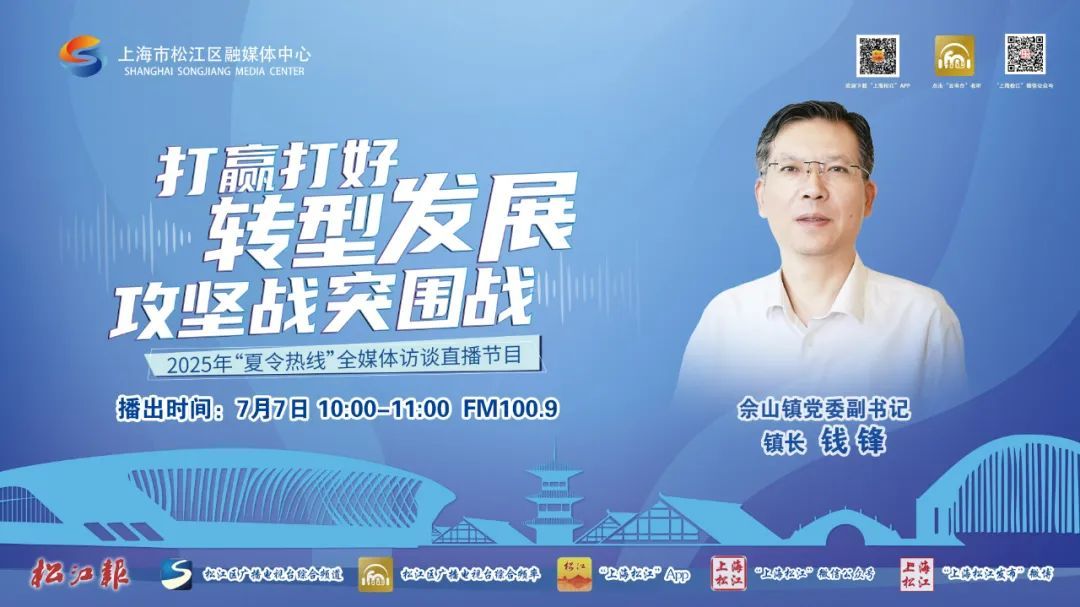7月7日,松江区融媒体中心2025年度“夏令热线”将邀请佘山镇党委副书记、镇长钱锋,走进松江区融媒体中心可视化直播间,倾听佘山镇高质量发展、民生保障、社区治理等工作的意见和建议,现场解答市民急难愁盼。