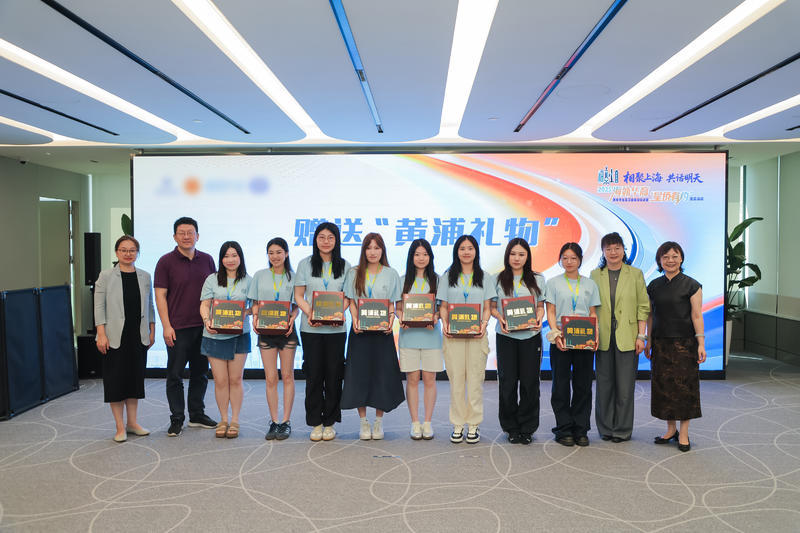 随后,是授旗环节。当华裔青年团员代表龚依龄、韩佳霖、林铭怡、王蘅月、张培培、章子琳、陈以铭、王佳琪接过绣有“海外华裔青年学生实习团”字样的旗帜时,象征着这场文化寻根与职业实践的双重旅程正式启航。为进一步提升老字号文化、海派文化国际传播力,上海市黄浦区还向青年赠送了富有上海特色的“黄浦礼物”。
