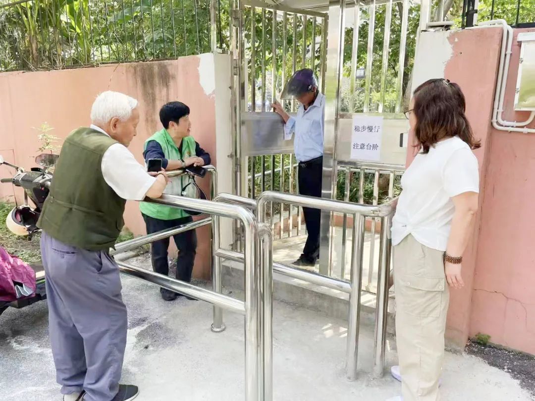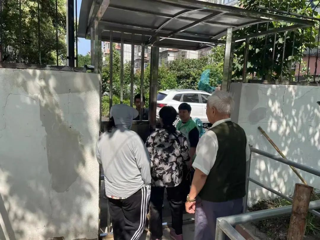 在网格党建联席会议上,“破墙开门”议题引发热议。镇综合行政执法队、城建中心、物业公司、居民代表各抒己见:“开墙破洞会不会影响小区安全?”“施工期间噪音扰民怎么办?”“门的位置设在哪儿最合理?” 各职能部门查看现场 面对争议,网格联席会议提出“三步走”方案:一是专业评估,邀请各职能部门现场勘测,确认墙体结构安全。二是科学选址,综合人流量、消防安全、治安管理等因素,选定靠近主干道的东南角作为开门点。三是试点先行,采用“分段破墙+智能门禁”模式,既保障安全又便捷通行。 经过4轮协商,最终敲定方案:拆除2米长围墙,安装24小时智能门禁系统,同步增设夜间照明设施和管理摄像头。