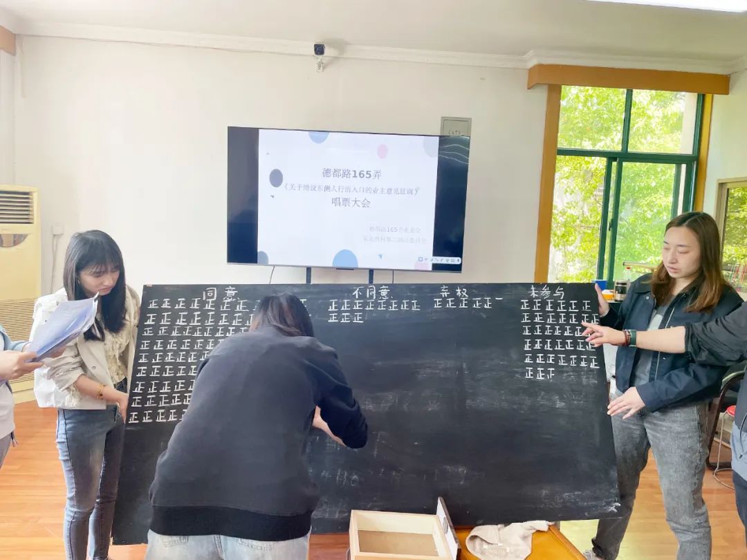边门开设前 友间公寓党群阵地建设后,丰富的活动吸引了周边居民前来打卡。不少居民向居委干部反映,每次参加完活动,都要绕道安家路才能回到小区,东侧的围墙要是能打通就好了。网格会同乐业四村居委迅速行动,通过“邻友议事会”收集居民诉求,发现类似困扰并非个例。今年4月,这一民生堵点被列为网格攻坚项目。 居民票决 乐业四村二居委随即通过社区自治平台、公告栏、居委意见箱等方式征集居民的意见建议,组织居民区党员志愿者开展宣传动员,让年轻白领、老年居民都参与表决。最终,通过发放意见征询单1135份,以85.6%的表决同意率,同意增设东侧人行出入口。