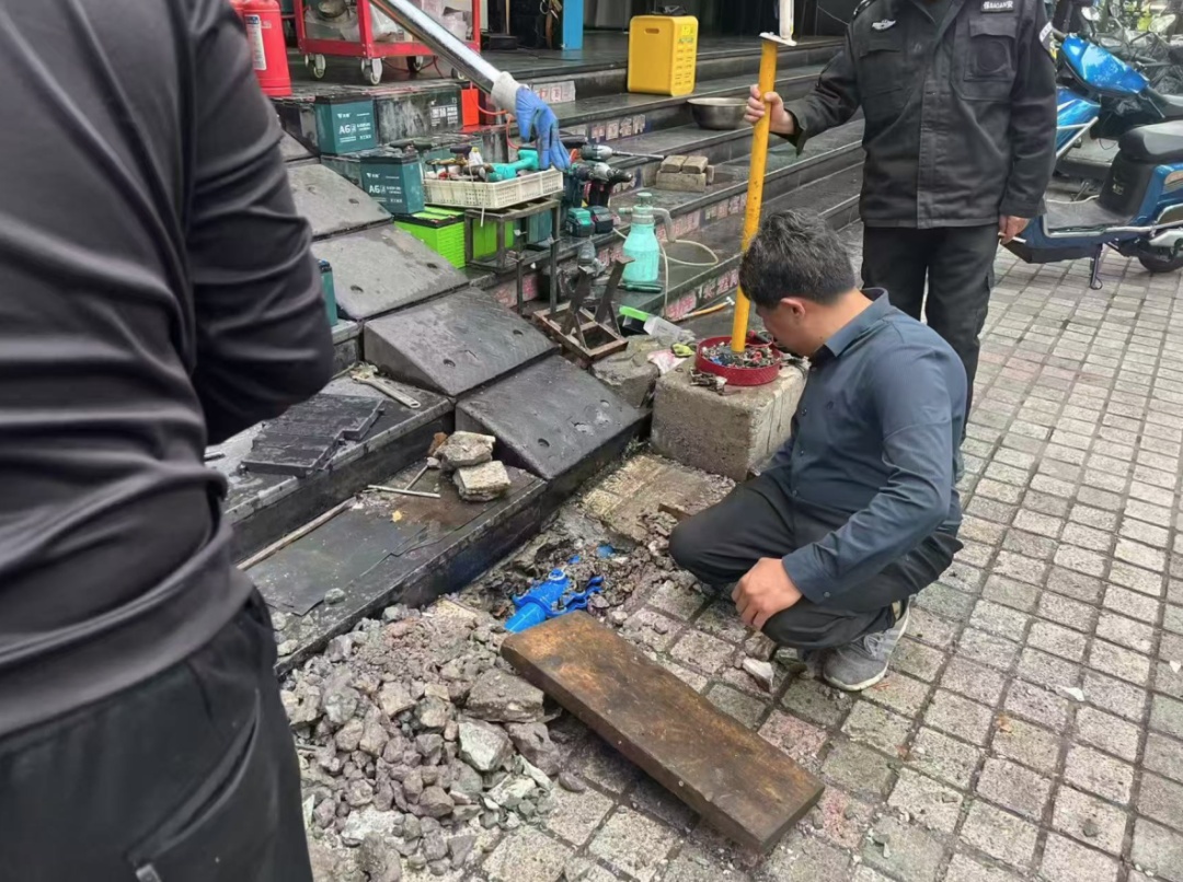 这样的“急茬”成了常态。四月,宛平南路水管爆裂,她带着徐房集团的人在积水中跑前跑后,膝盖撞到井盖青了一大块,却在60分钟内搞定了管道抢修。现在路过商户,常常看到的是商户们的笑脸,和“进来吃块西瓜休息一下嘛”的招呼声,那张印着她手机号的“街区服务卡”,被商户们贴在收银台最显眼的地方。
