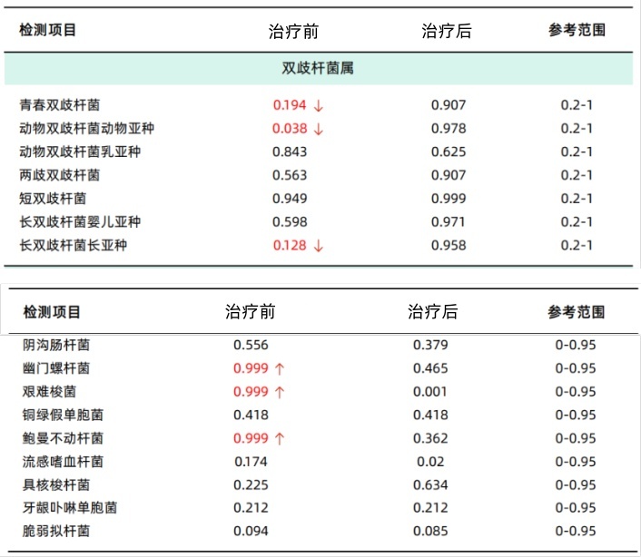 在充分术前准备后,鲁阿姨接受了肠道菌群移植术,健康供体的菌群通过纤细的鼻肠管注入肠道内,这一无痛无创的移植途径可在有效抑制艰难梭菌的同时补充有益菌,重塑肠道微生态平衡。治疗效果令人振奋,短短几天,患者腹痛、腹胀和脓血便症状就显著缓解,甚至能够下床行走,虽然只是小小几步,但让家人和医护人员都十分振奋。随后的复查检测进一步证实了治疗的成功:艰难梭菌丰度迅速降至最低水平,两种相关毒素检测均为阴性;肠道微生物多样性从“低水平”(2.39)提升至“稍低水平”(2.92);菌群平衡状态从“中度失衡”(B/E值0.2)恢复至“健康平衡”(B/E值2.5);有益菌的异常项从4项减少至1项;致病真菌从显著异常转为无异常。鲁阿姨的康复速度创下了医院同类病例中的最快纪录。