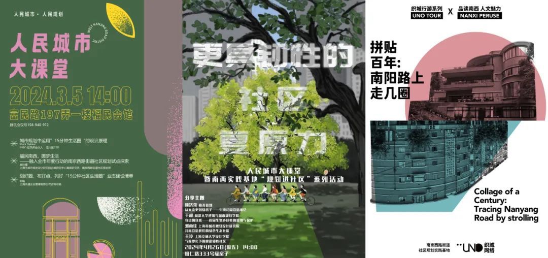 基于对南西社区特征和问题的分析,规划确定南西社区未来将以“丰盛、人文、活力、韧性”作为四大营造目标,依托实践基地的跨界协作,策划在福民会馆、绿房子等地开展多场“大咖学堂”“社区讲堂”系列科普讲座,向居民讲解社区规划、更新方案,倾听意见、了解所需,通过共议、共学、共绘,发掘和培育社区中设计力量。